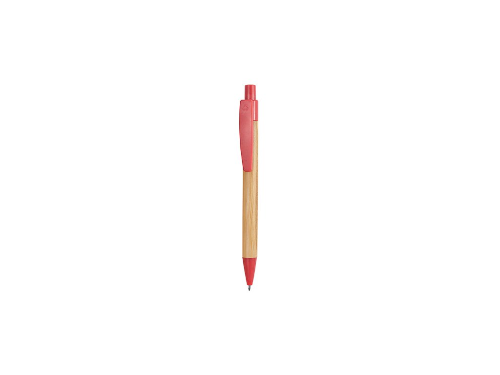 Gombíkové pero s bambusovým povrchom a príslušenstvom z pšeničného vlákna / ABS. Modrý atrament.