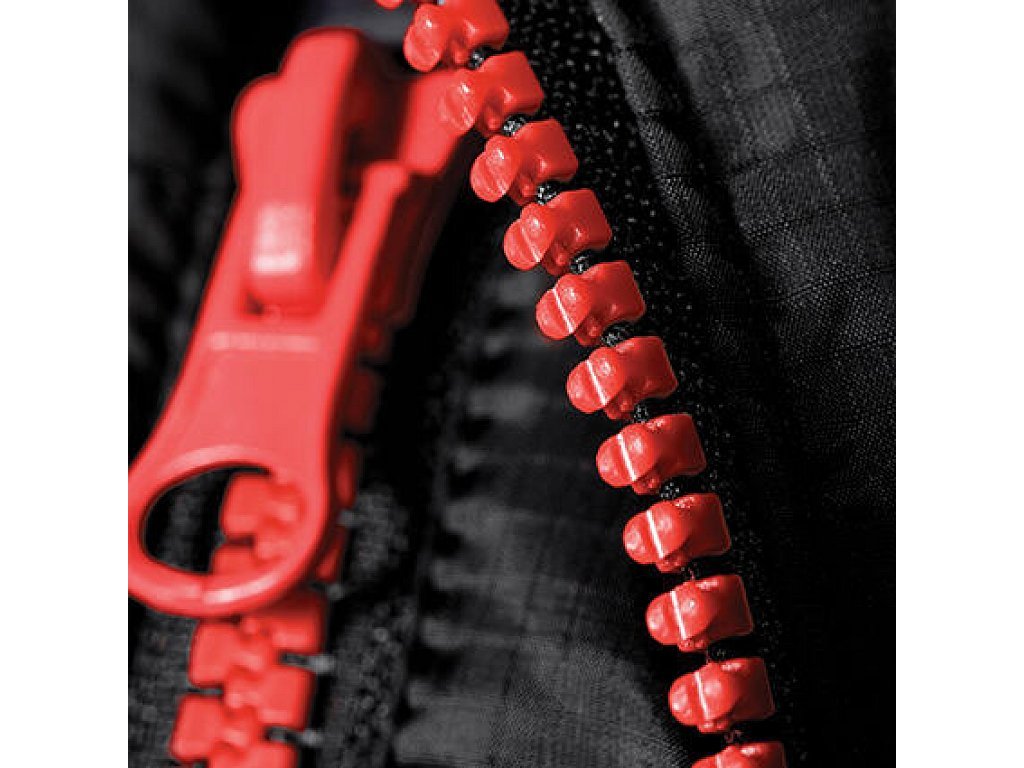 - Celý zips s kontrastnými zúbkami zipsu a vnútornou chlopňou
