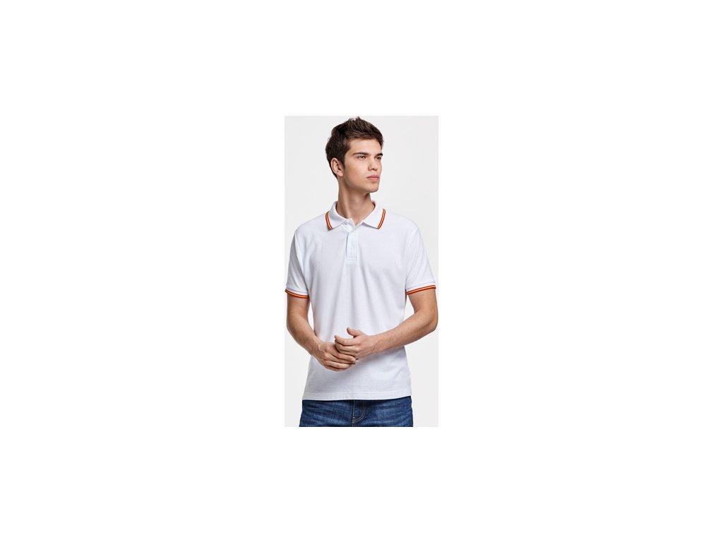 Polokošeľa s krátkym rukávom, golier a manžety v žakárovom úplete, 3 gombíky. Spevnené skryté švy na priekrčníku, Logo vlajky vyšité na zadnej strane.