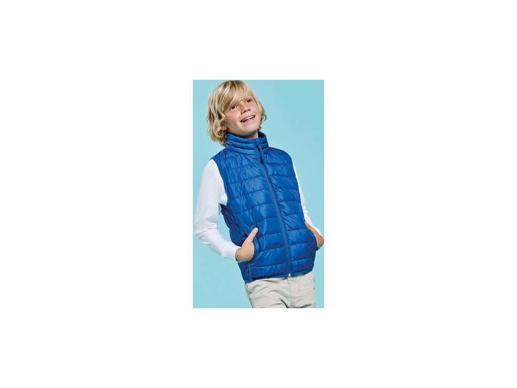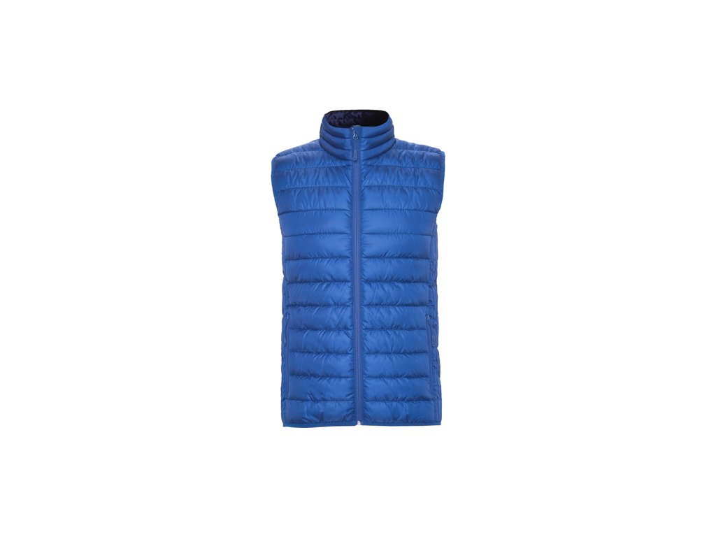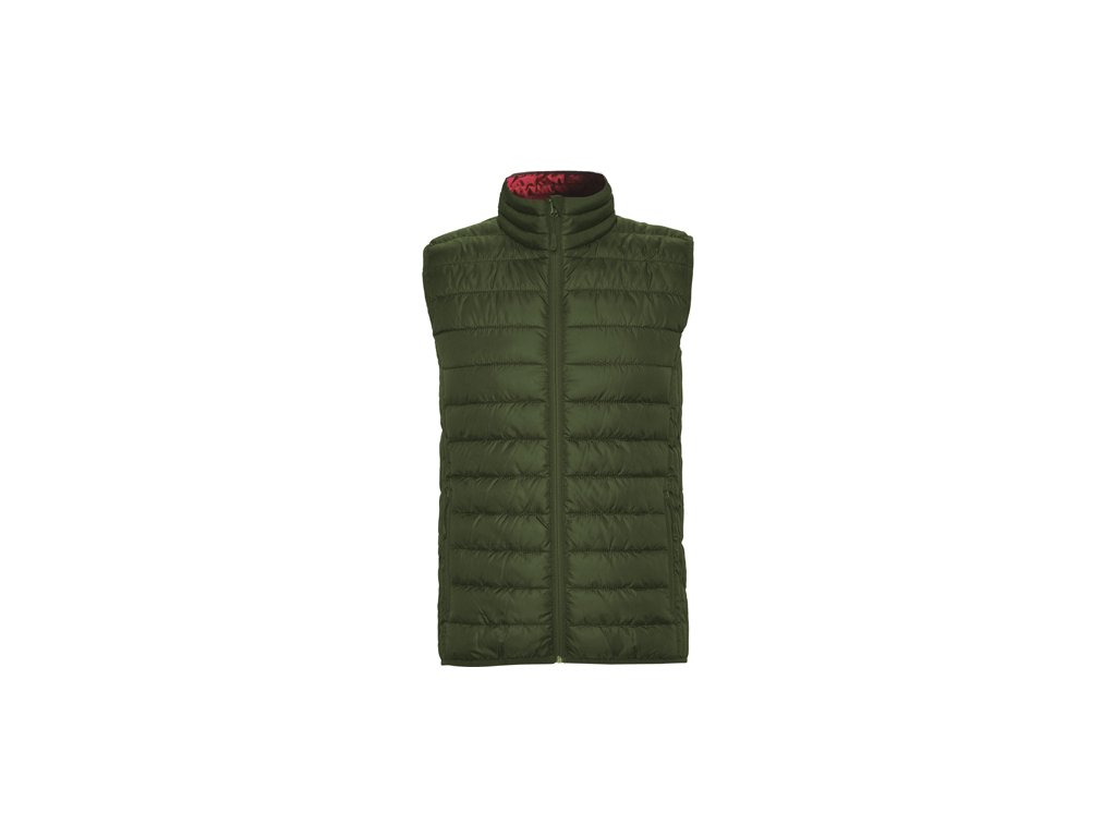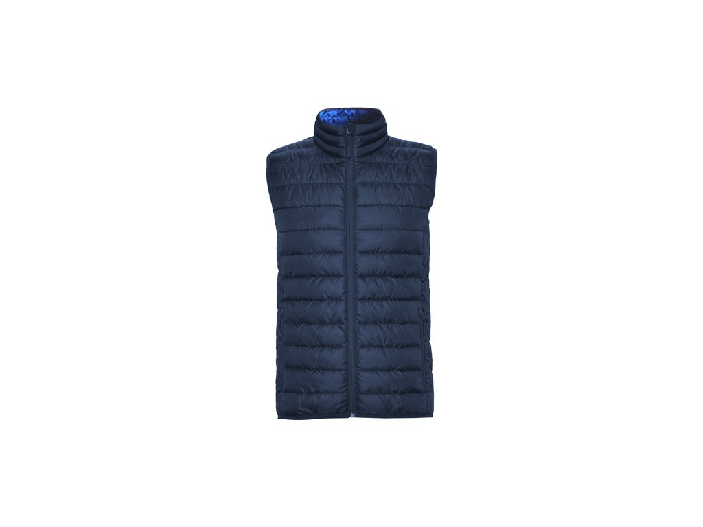 Pánska prešívaná vesta. 1.- Celoprepínací zips s krytkou jazdca. 2.- Dve bočné vrecká na zips. 3.- Podšívka v kontrastnej farbe. 4.- Elastický spodný lem v rovnakom tóne. 5.- Priložená taška na zloženie. Ľahký odev s možnosťou zloženia. Vypasovaný strih u dámskeho modelu.
