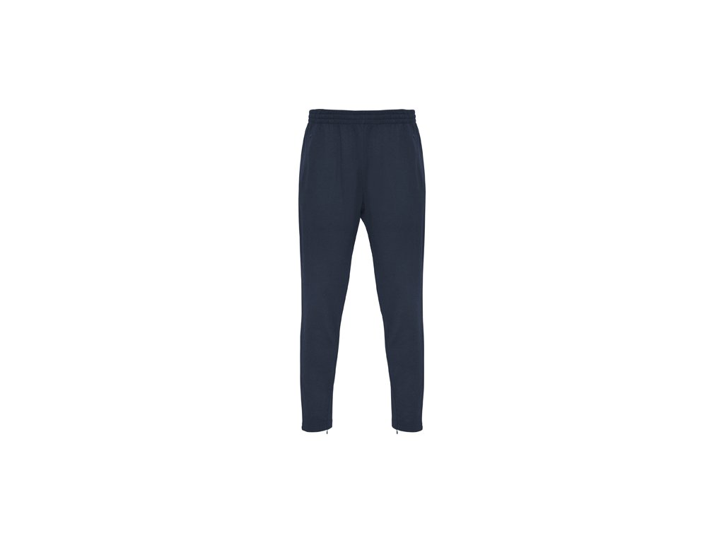 Dlhé nohavice s pružným pásom, nastaviteľné s vnútornou šnúrkou. Boky šité dopredu. Dve bočné vrecká a bočné rozparky v leme so zipsom.