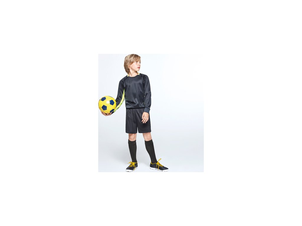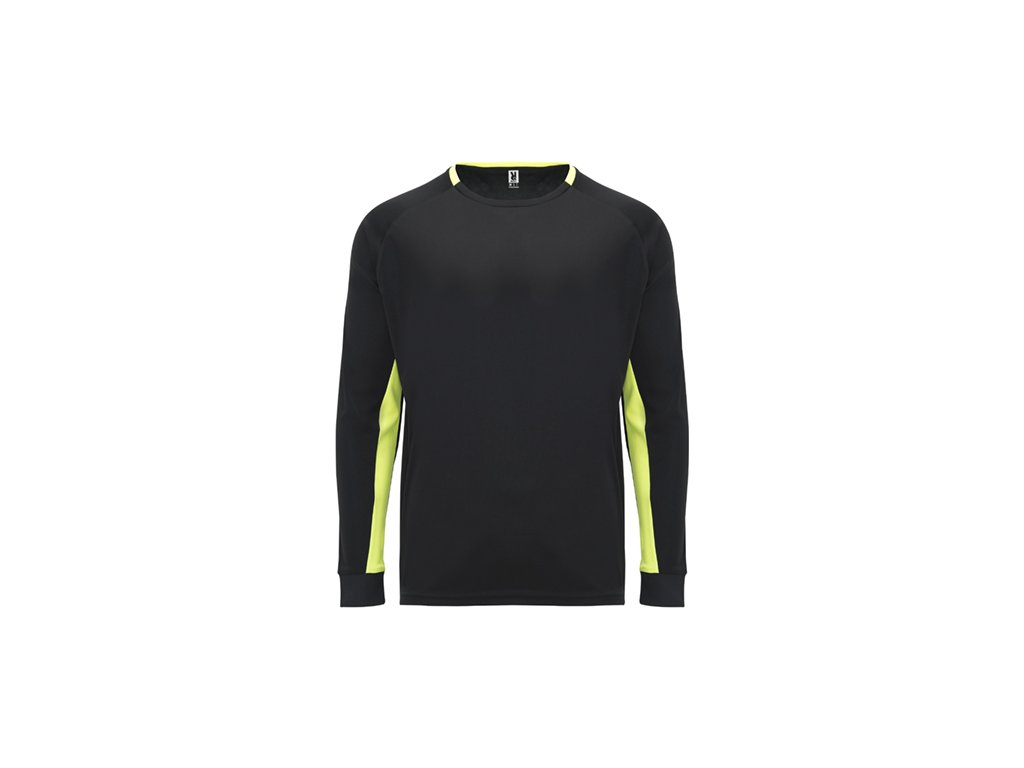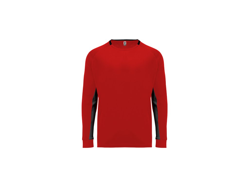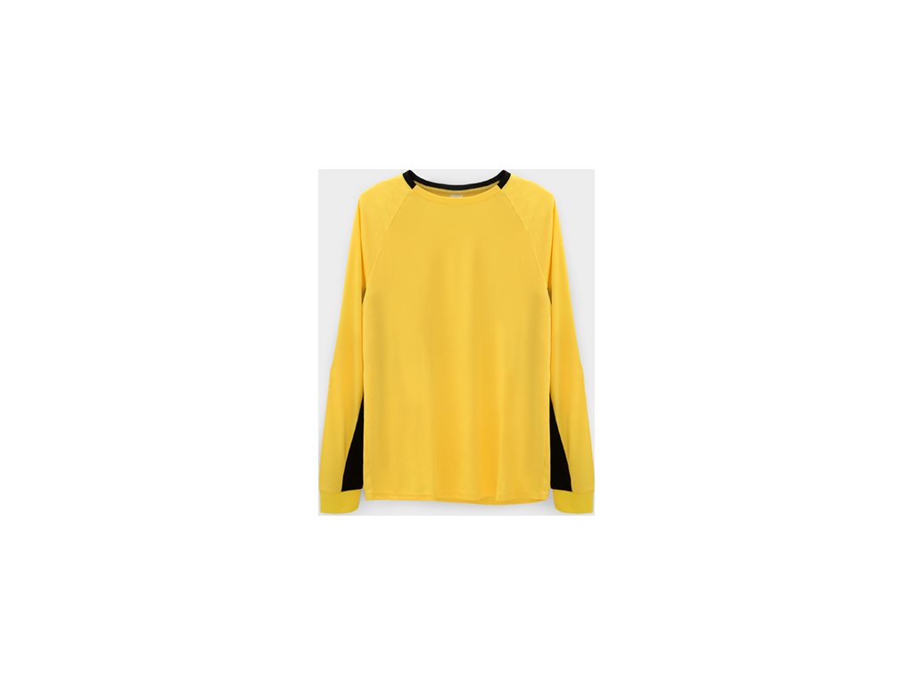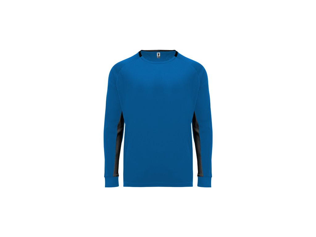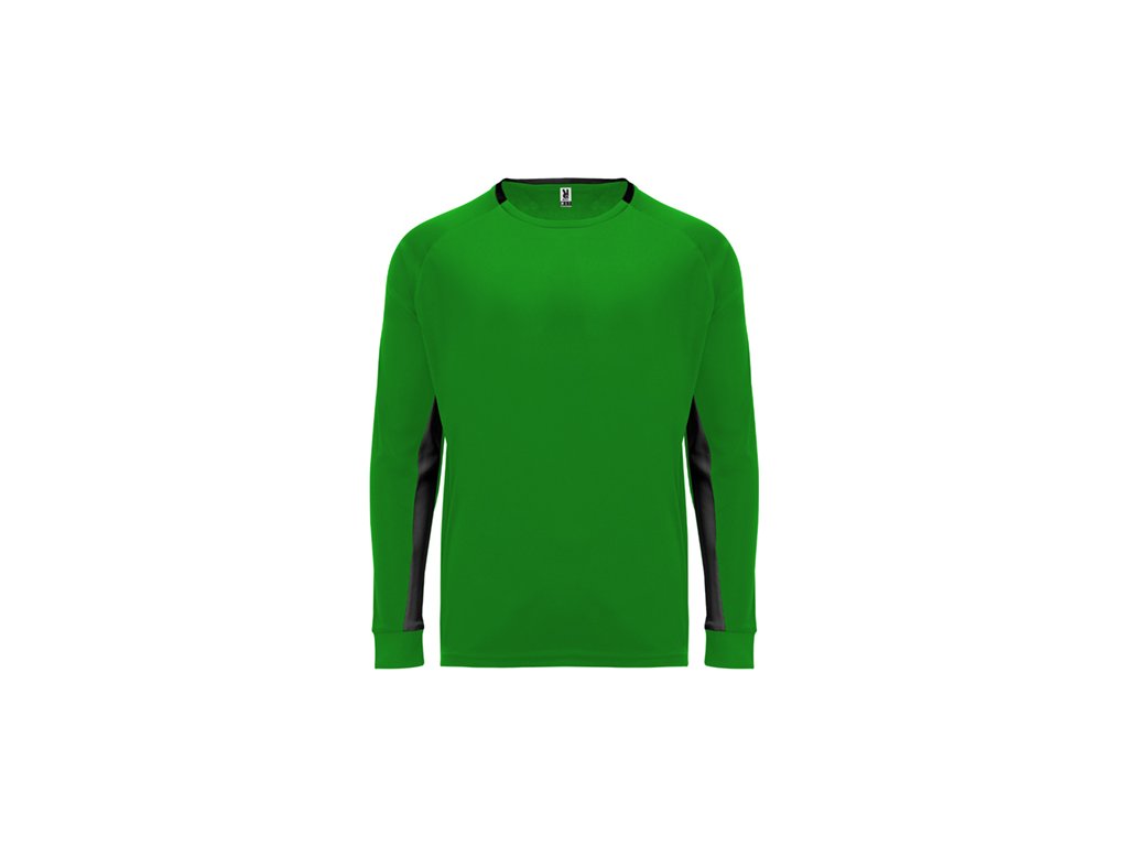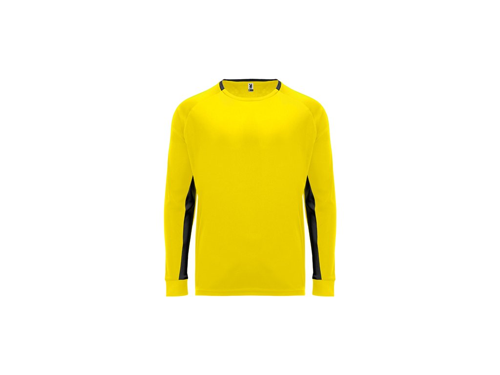 Brankárske unisex tričko.1. Dlhé rukávy s prešívanými záplatami na lakťoch. 2. Kontrastné panely vo vnútornej strane rukávov.3. Kontrastné prvky na zadnej strane goliera a manžiet.