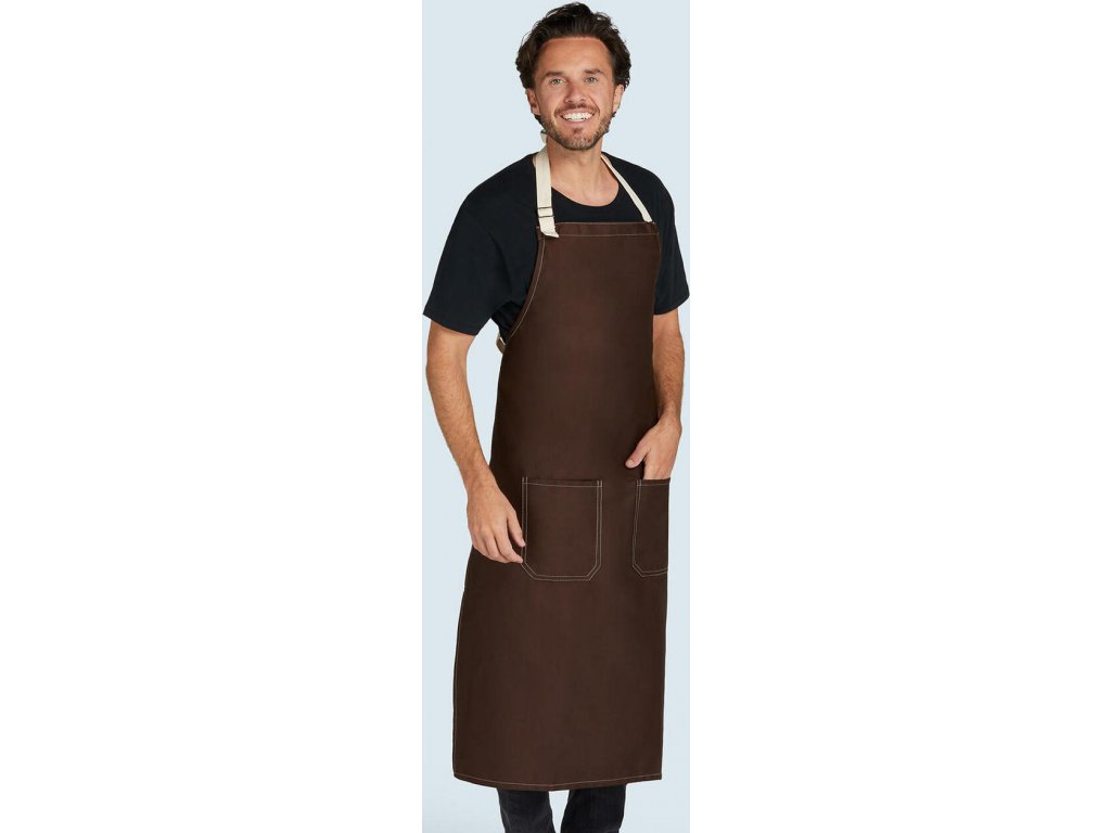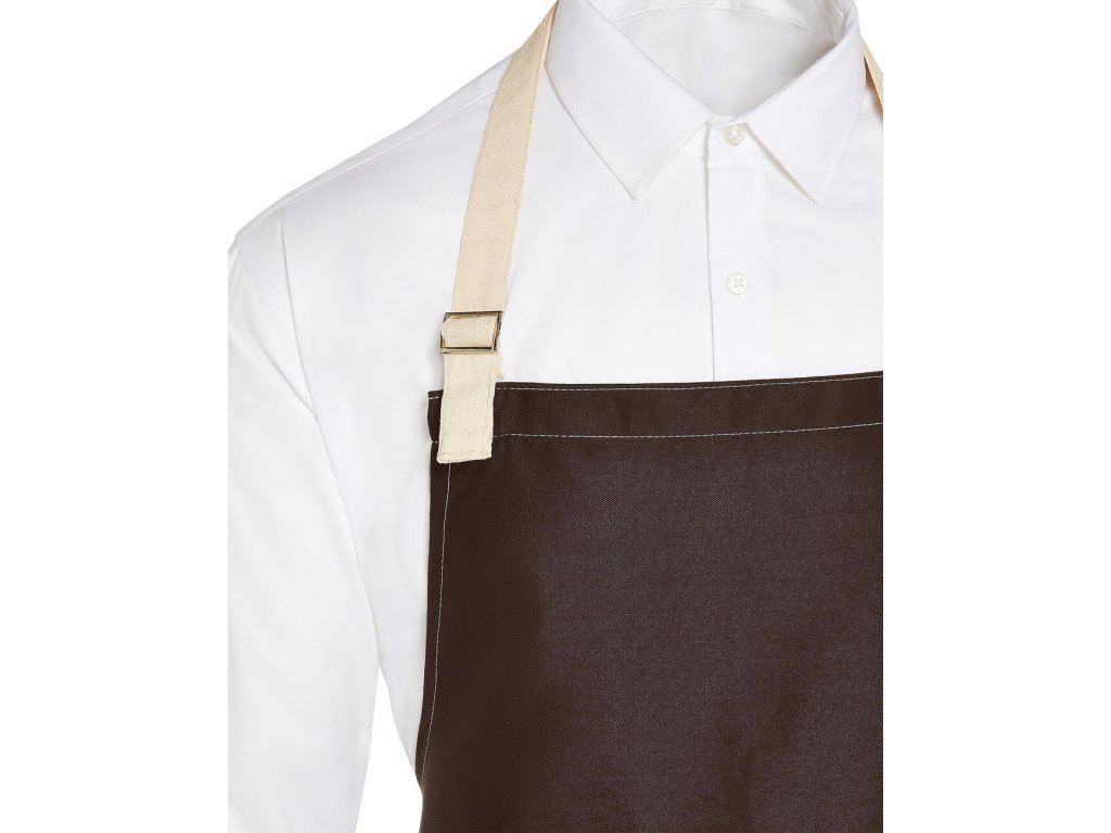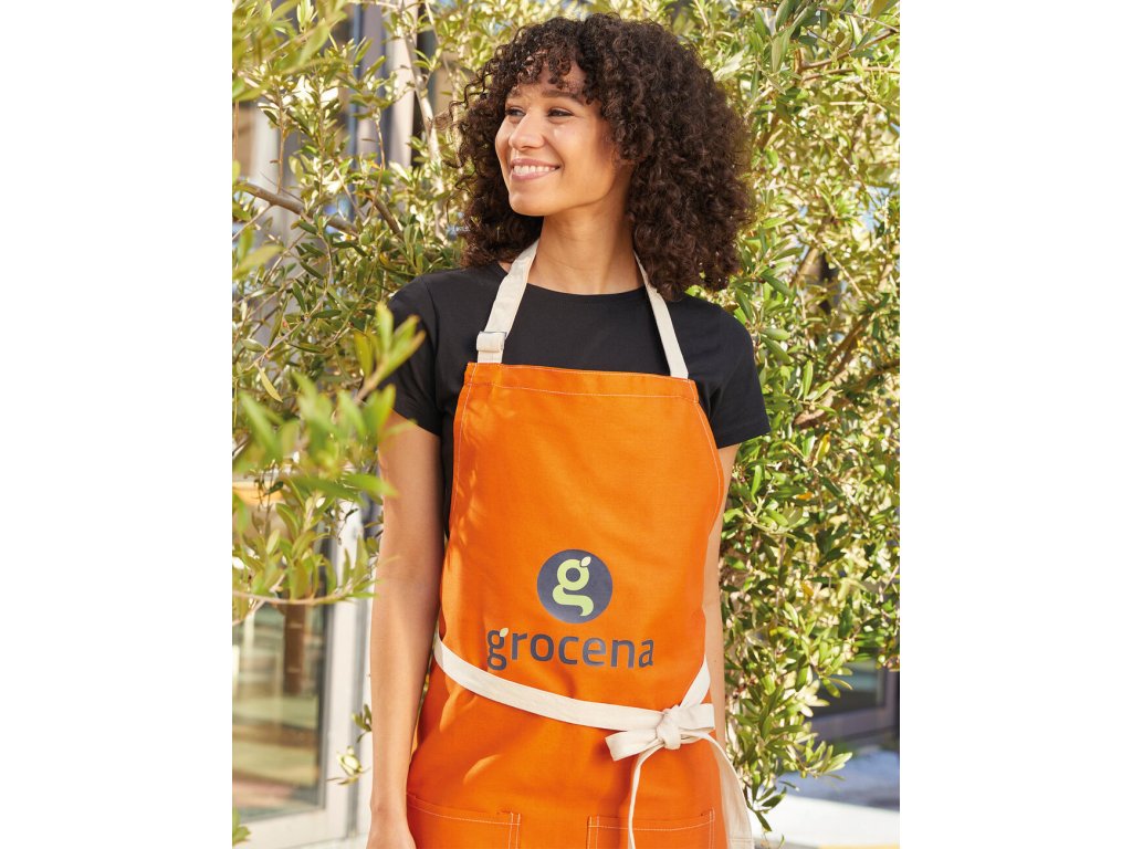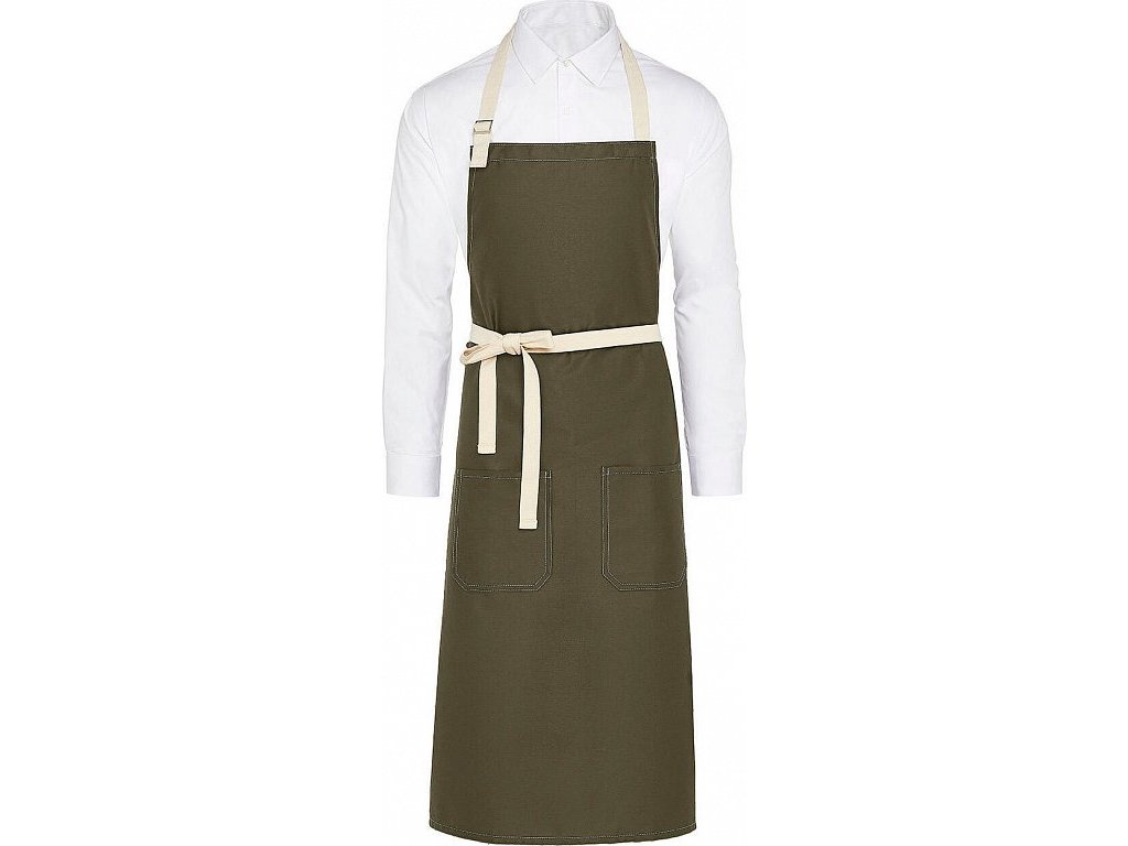 - Trendová zástera s kontrastným farebným prešívaním a pásom