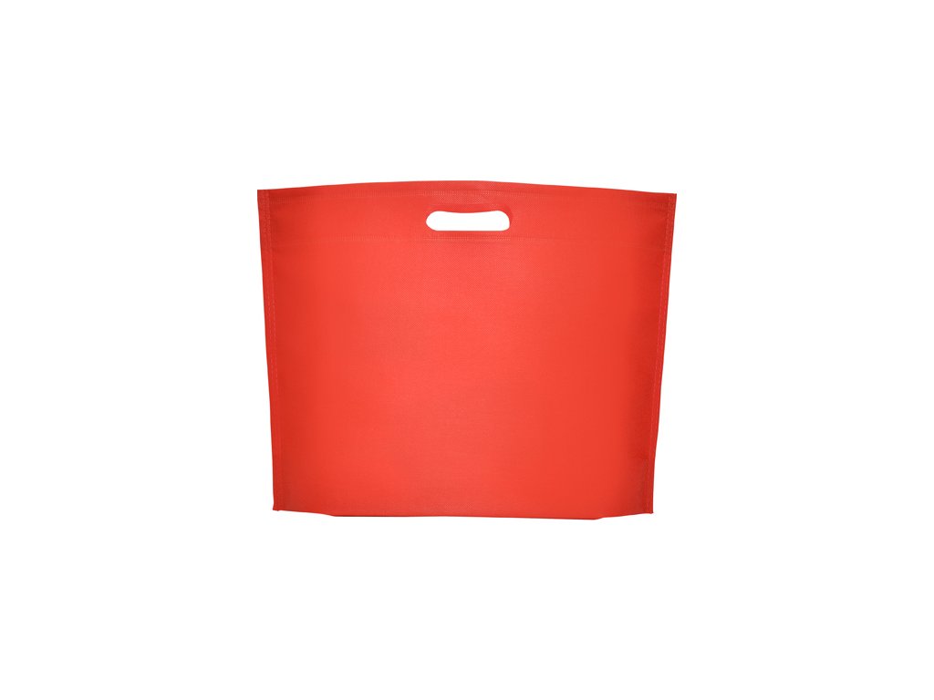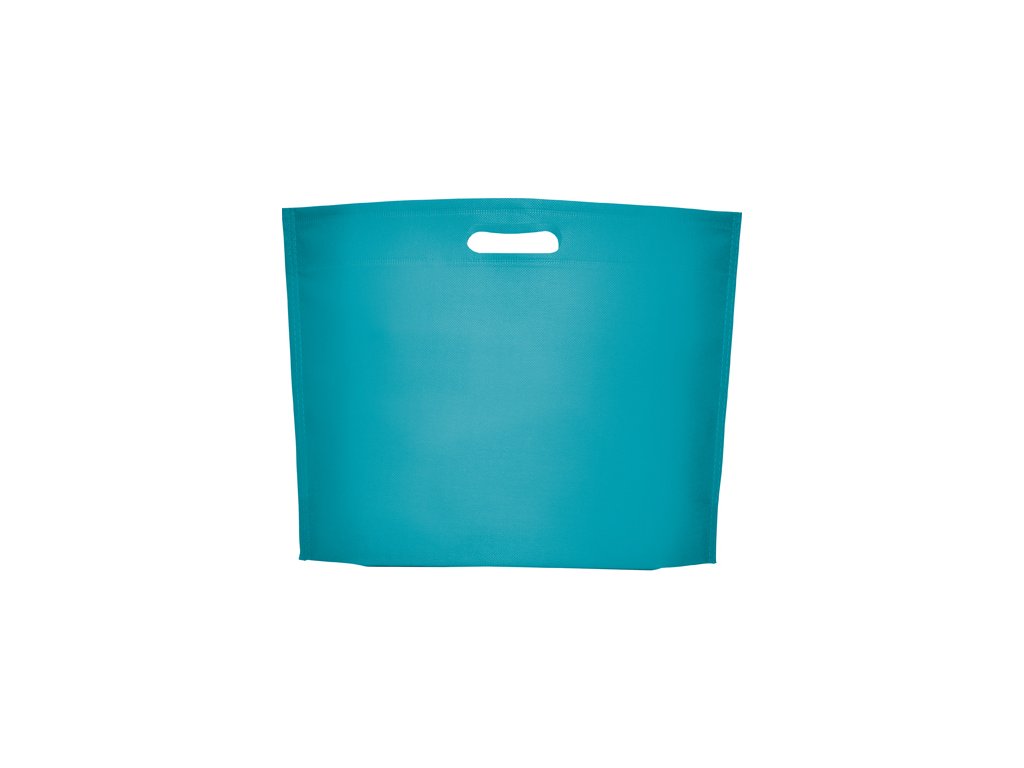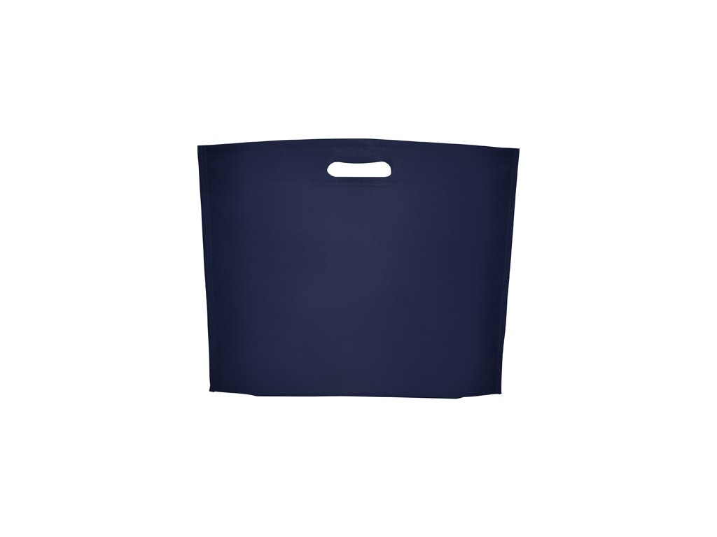 Tepelne zatavená taška s klinom na spodnej časti, vyrobená z netkanej textílie, s vysekávanou rukoväťou.