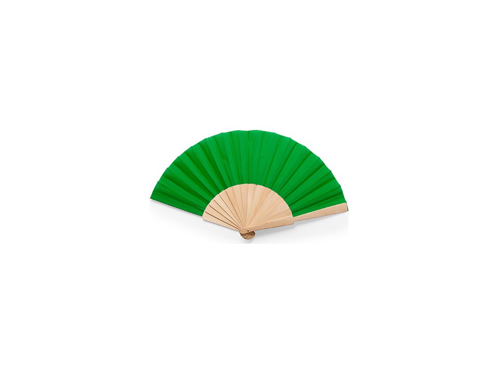 Vejár s drevenými rebrami a polyesterovou tkaninou. Dodávané v bielej krabičke.